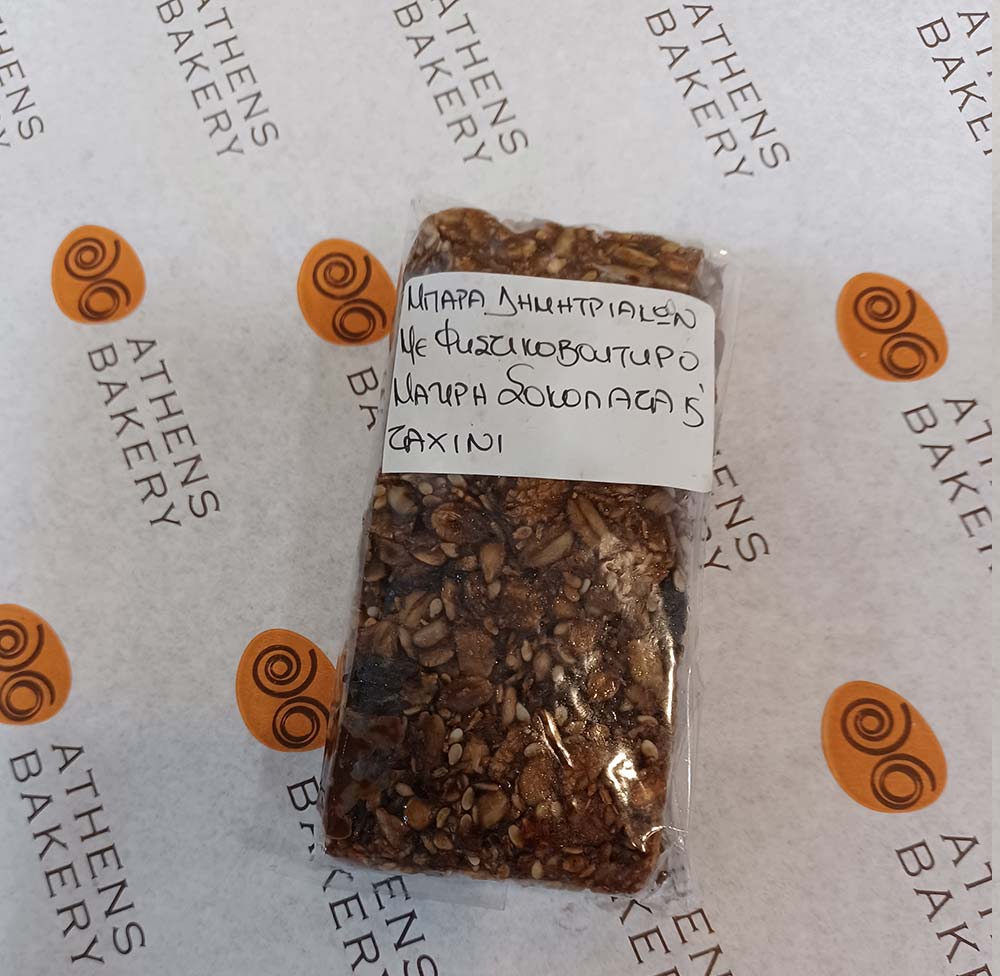 ΧΕΙΡΟΠΟΙΗΤΗ ΜΠΑΡΑ ΔΗΜΗΤΡΙΑΚΩΝ ΧΩΡΙΣ ΖΑΧΑΡΗ ΜΕ ΦΥΣΤΙΚΟΒΟΥΤΥΡΟ, ΣΟΚΟΛΑΤΑ ΥΓΕΙΑΣ, ΞΗΡΟΥΣ ΚΑΡΠΟΥΣ ΚΑΙ ΤΑΧΙΝΙ